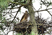 먹이를 가져왔는데 암컷도 시큰둥해하고, 아래에서는 낯선 아저씨가 쳐다보고 있어 불안했나 봅니다. 수컷이 들쥐를 움켜쥔 채 날아갔습니다.