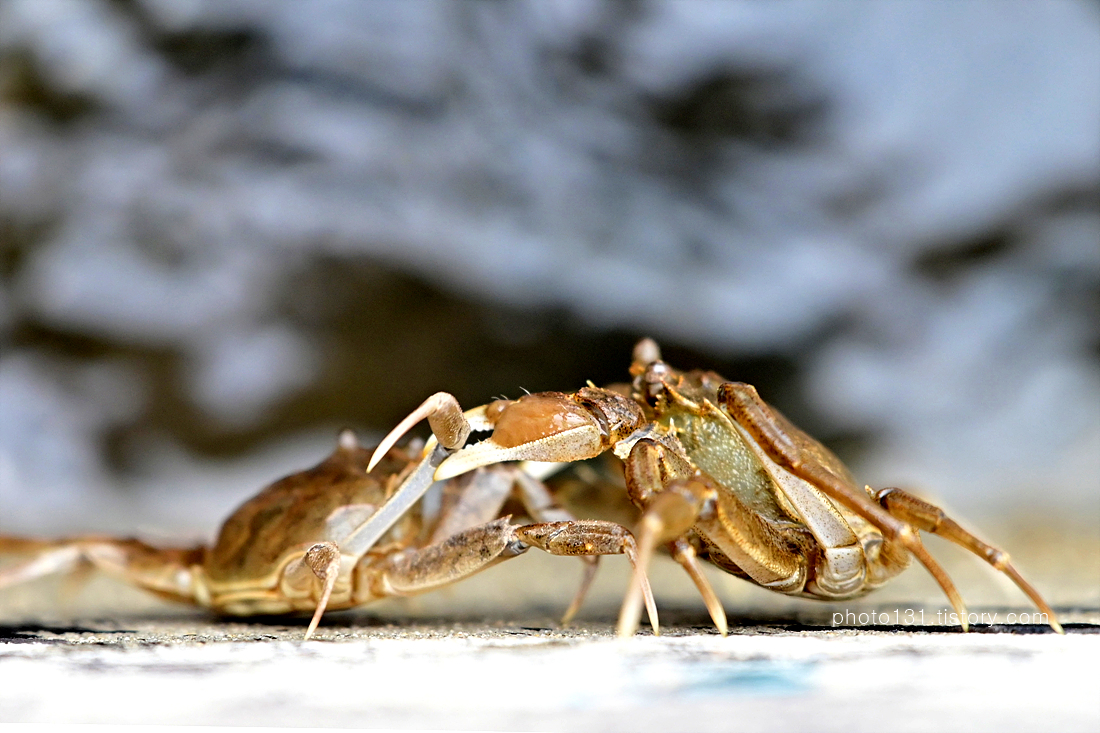 영역 싸움인 듯 큰 녀석이 집게발로 작은 녀석을 밀어 냅니다