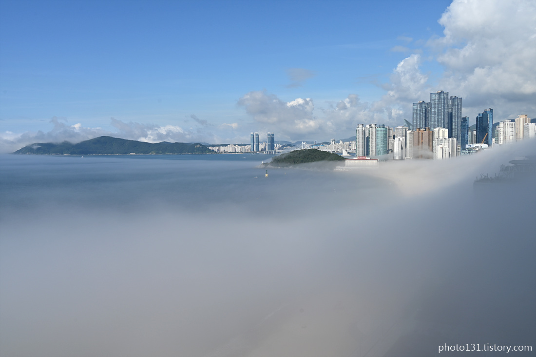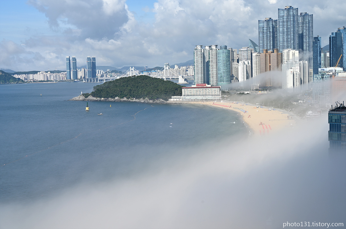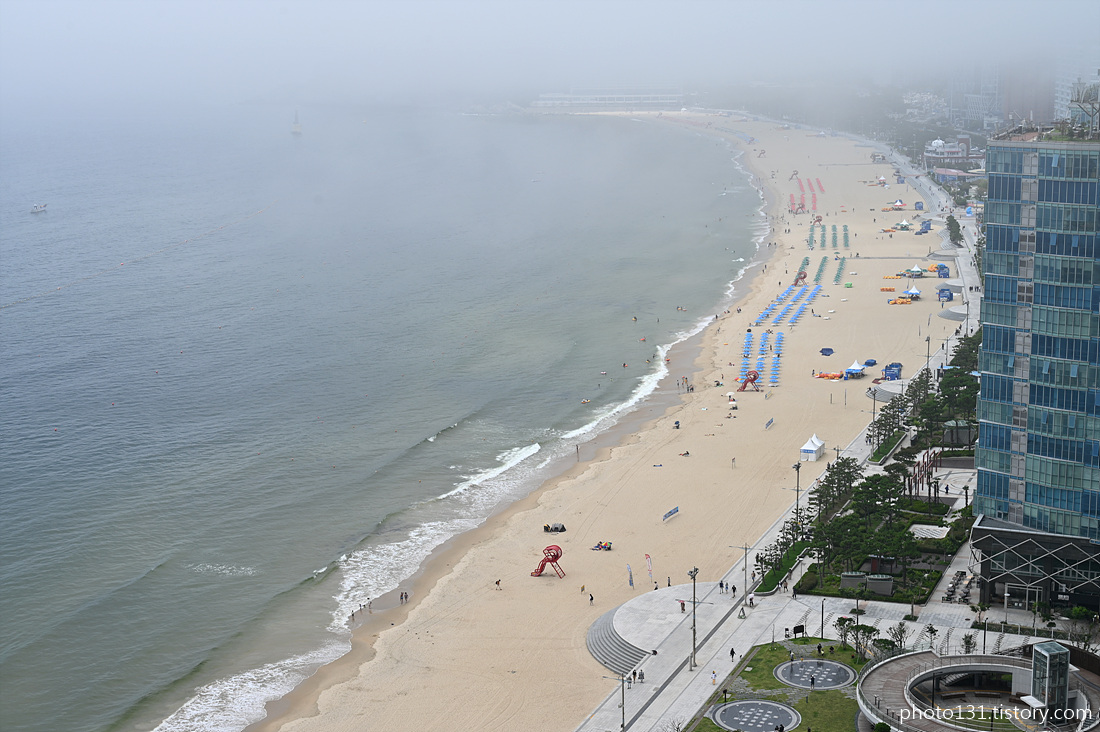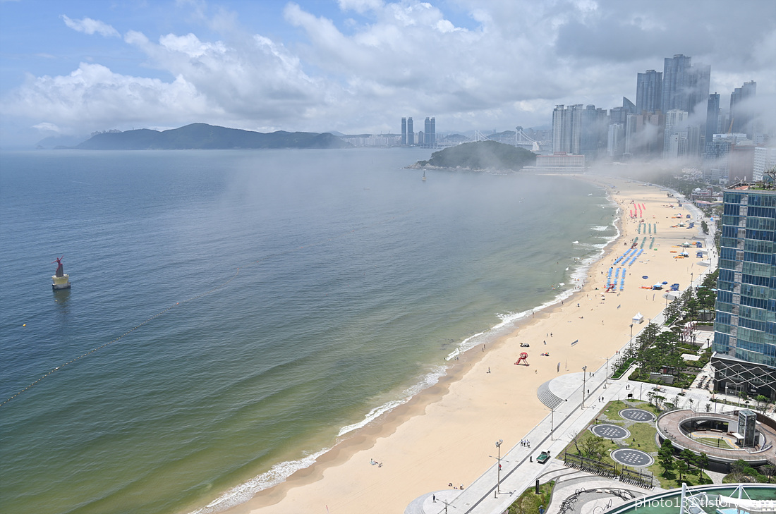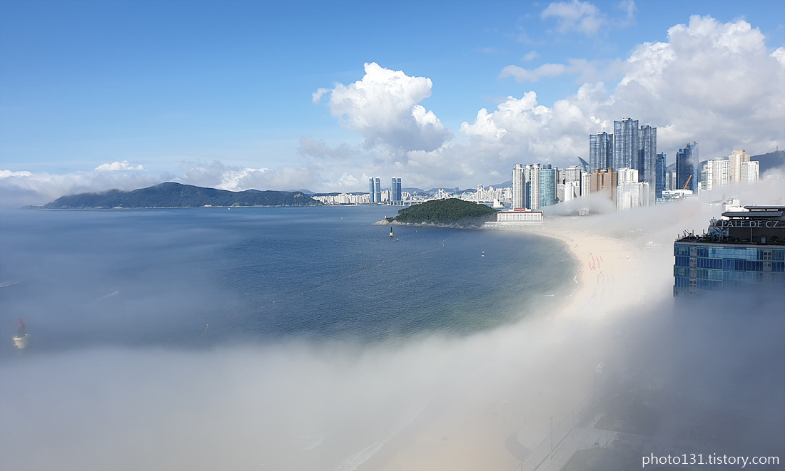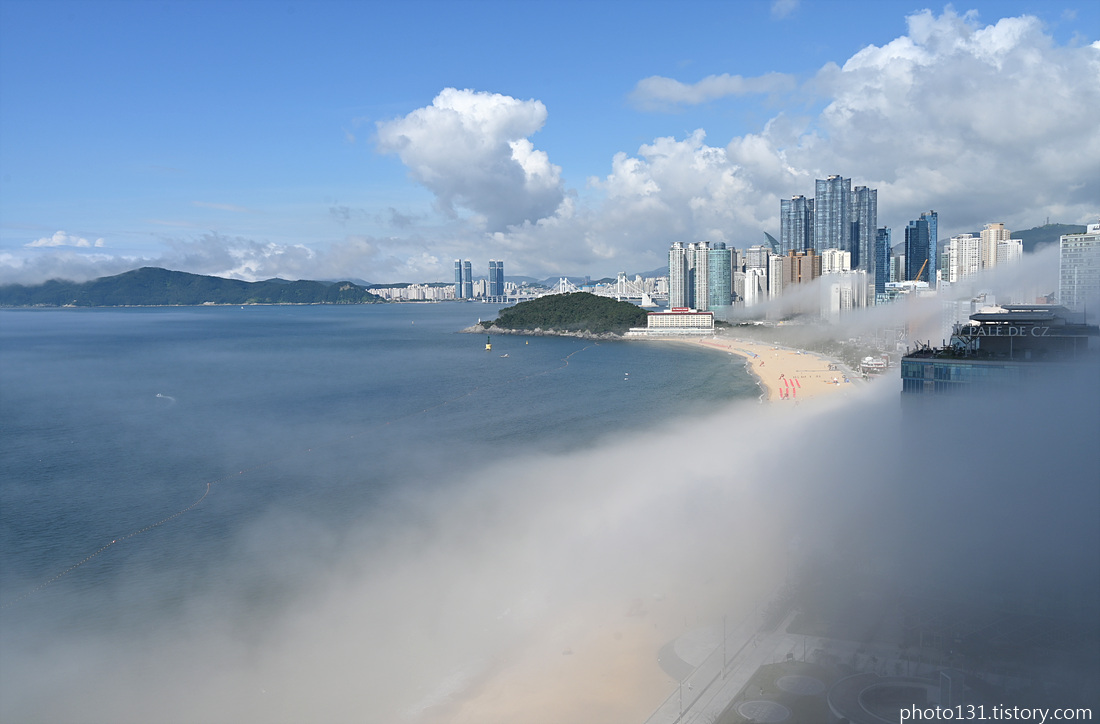 오전 9시경, 해무가 해운대 해변으로 밀려들기 시작