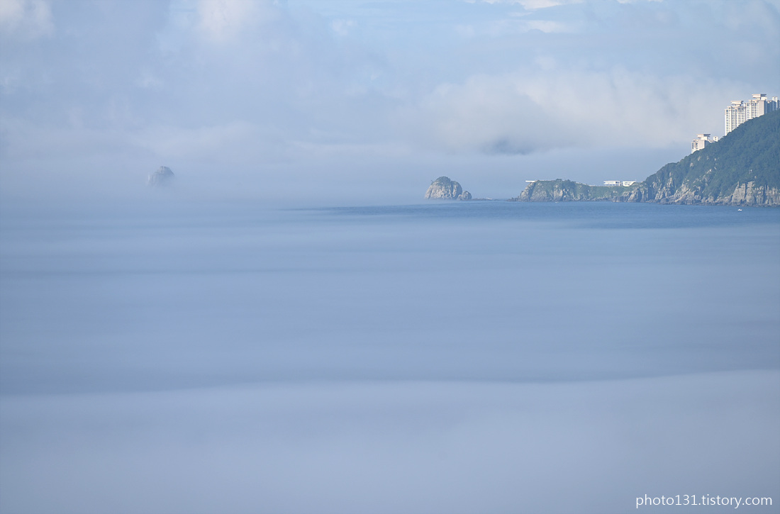 해무(바다안개)에 일부 가려진 오륙도