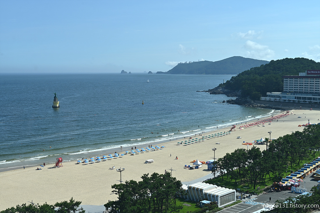 신라스테이 해운대 12층 룸에서 본 해운대 해수욕장과 오륙도