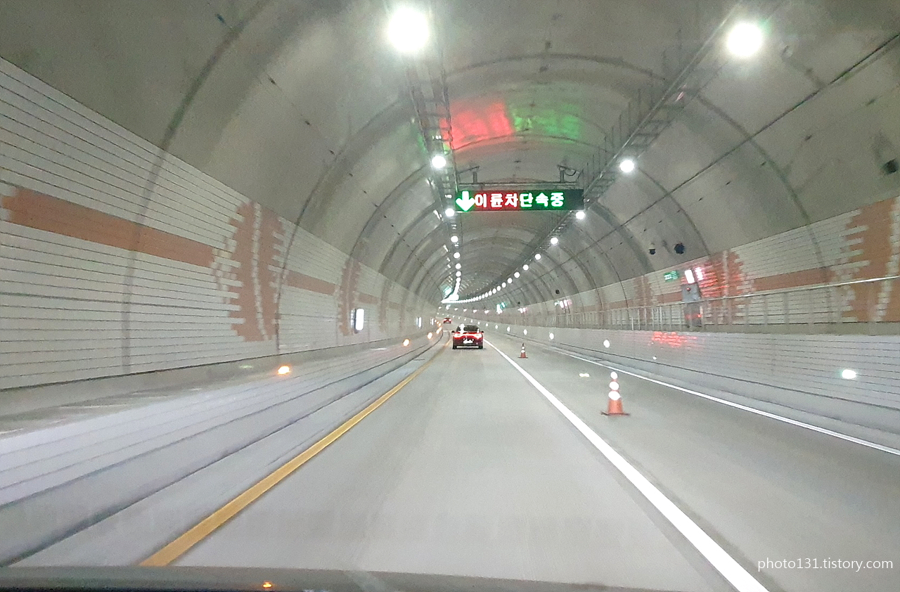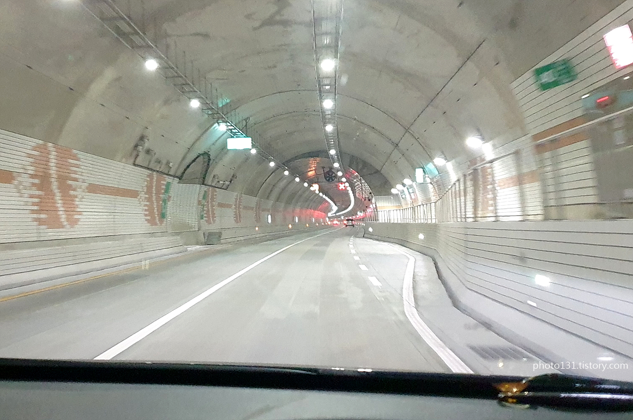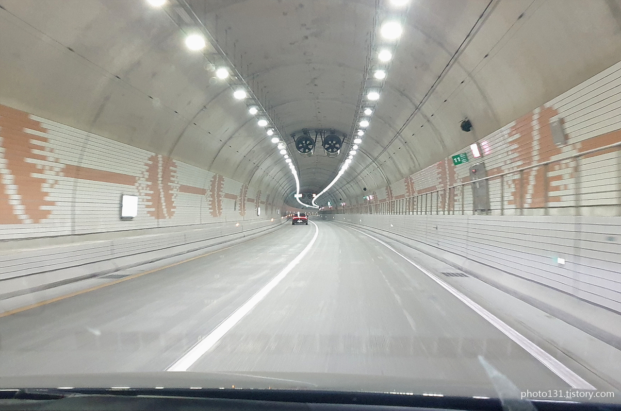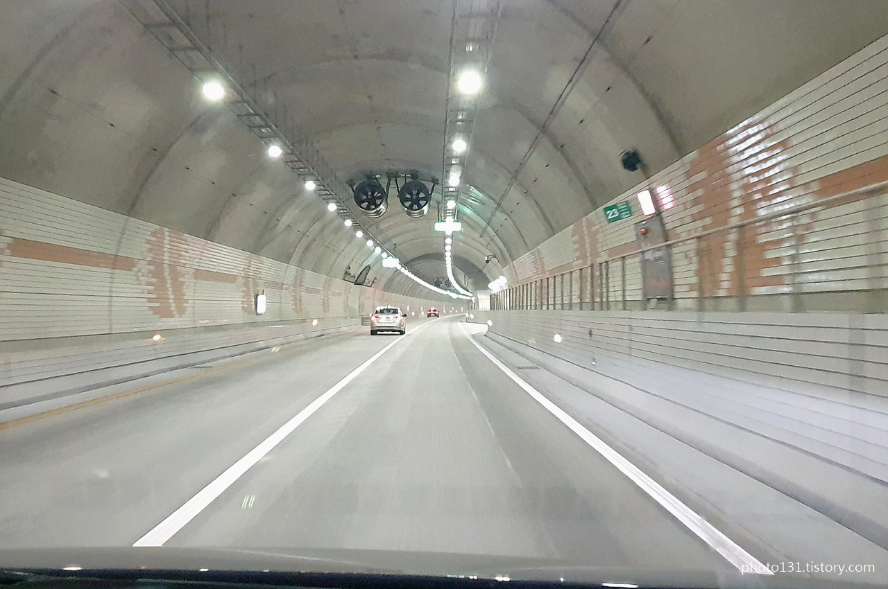 터널을 들어서면 중간까지 계속 내리막길이라 액셀에서 발을 떼어도 70mk/h 가유지된다