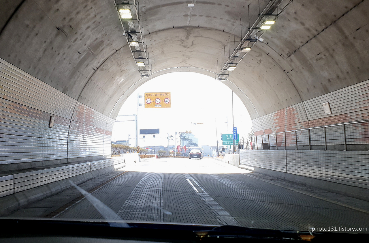 해저터널을 70km/h로 6분쯤 달려 대천 쪽 출구에 도달